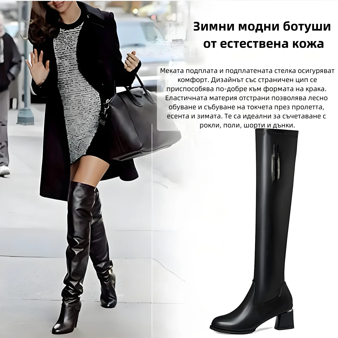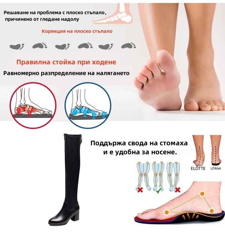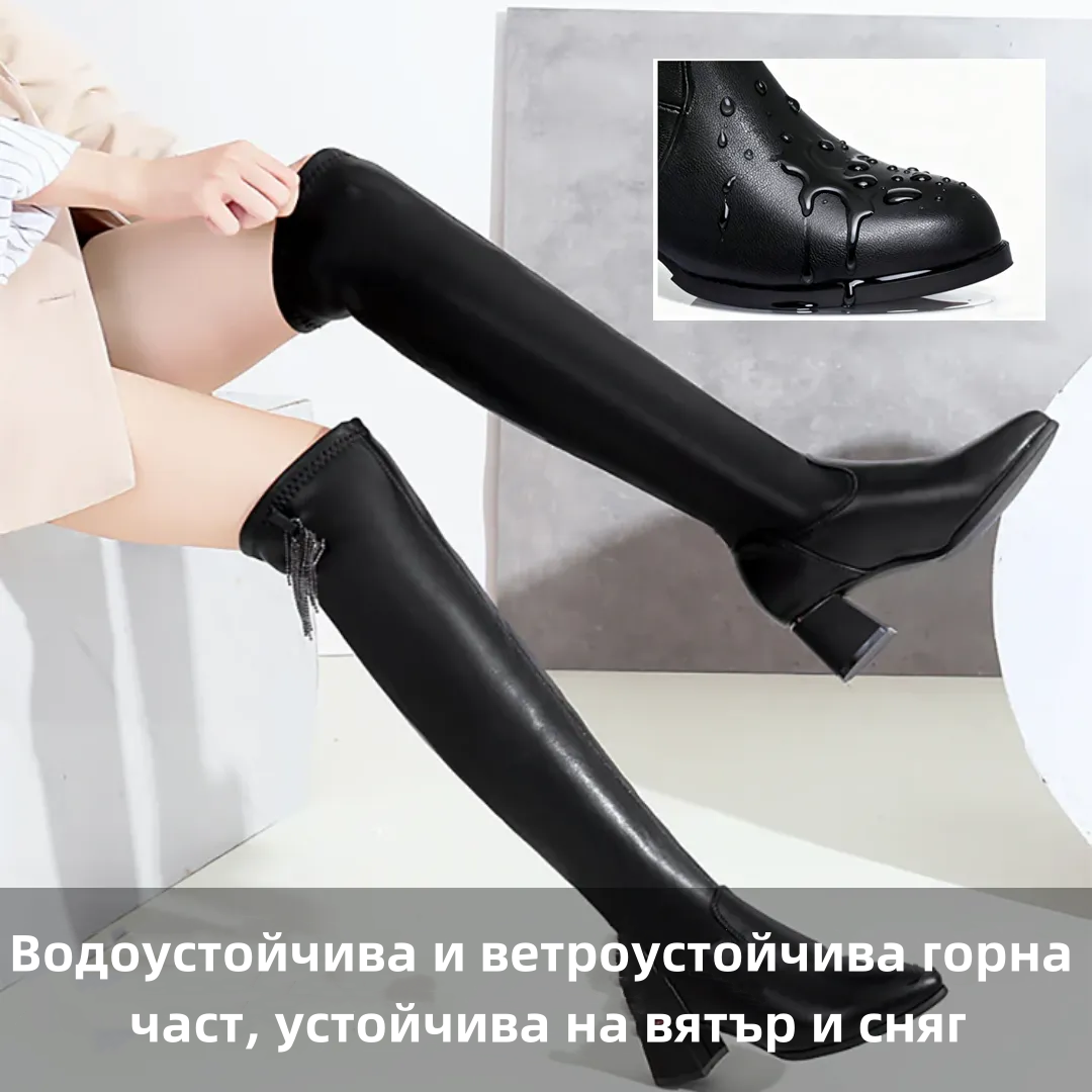 (🔥50% отстъпка днес - не пропускайте!)⏰ - Меки и удобни плюшени ботуши над коляното от естествена кожа - Ергономичен дизайн (предотвратява разширяването на вените)
